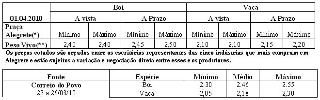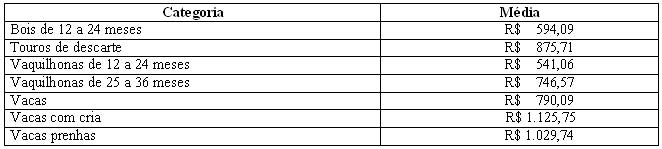 As médias dos remates de gado geral, realizados no Parque Dr. Lauro, no período de 22 a 26 de março foram as seguintes: