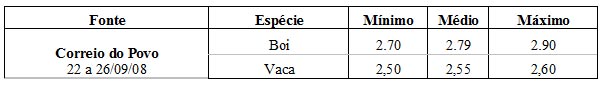 As médias dos remates de gado geral, realizados no Parque Dr. Lauro Dornelles, na semana de 22 a 26 de setembro, foram as seguintes: