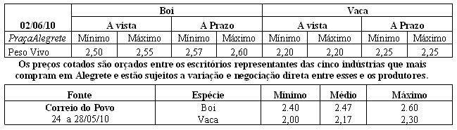 O Sindicato Rural de Alegrete promoveu com muito êxito o 1º Terneirão do Alegrete, que aconteceu nos dias 27 e 28 de maio, no Parque Dr. Lauro Dornelles. Foram comercializados 1.859 animais, totalizando R$ 1.033.890,00 em negócios. A média do kg do terneiro ficou em R$ 3,00, da terneira R$ 2,47 e da vaquilhona R$ 2,78. O lote padrão de Terneiros escolhido foi do EspólioTácito Jorgens Sá e Silva. No lote padrão de Terneiras a vencedora foi da produtora Graça Tirelli.