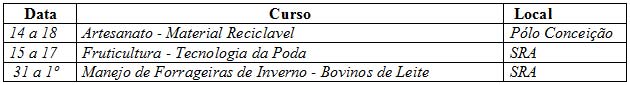 O Sindicato Rural de Alegrete está selecionando veterinários que queiram participar do Programa de Avaliação de Touros (PAAT). Os cursos serão de 7 a 8 de agosto e de 14 a 15 de agosto, na Estação Experimental da UFRGS, em Eldorado do Sul. Maiores informações pelo fone 3422.4577, com André Monteiro.