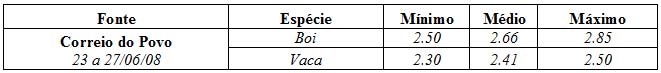 As médias dos remates de gado geral, realizados no Parque Dr. Lauro Dornelles, na semana de 23 a 27 de junho, foram as seguintes: