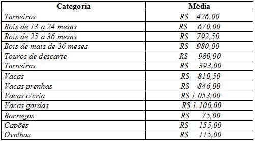 Os preços vigentes no mercado agropecuário desta semana atingiram as seguintes cotações médias: