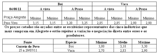 As médias dos remates de gado geral, realizados no Parque Dr. Lauro, no período de 25 a 28 de julho foram as seguintes: