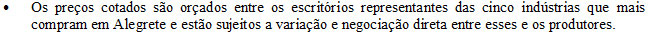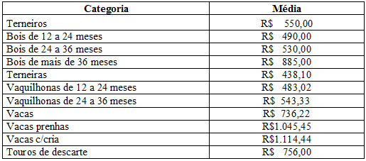 Os preços vigentes no mercado agropecuário desta semana atingiram as seguintes cotações médias: