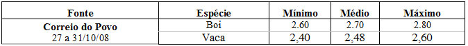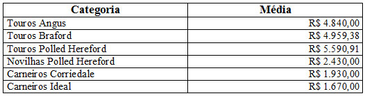 As médias dos remates de gado geral, realizados no Parque Dr. Lauro Dornelles, na semana de 27 a 31 de outubro, foram as seguintes: