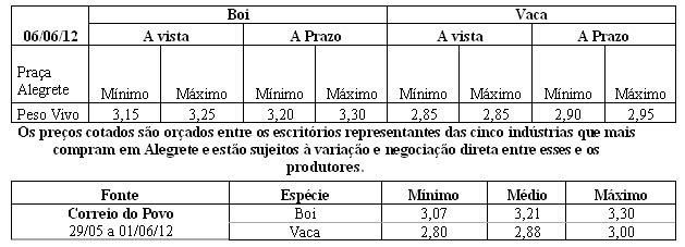As médias dos remates de gado geral , realizados no Parque Dr. Lauro Dornelles, no período de 28 a 31 de maio, foram as seguintes: