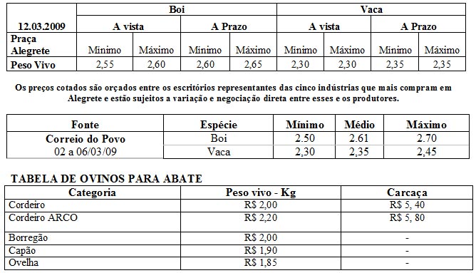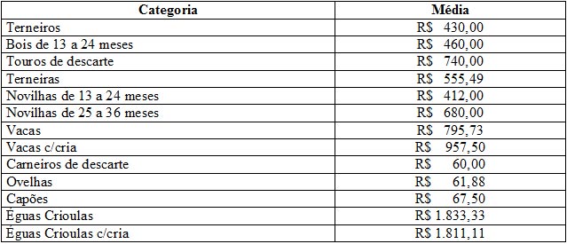 As médias dos remates de gado geral, realizados no Parque Dr. Lauro, no período de 02 a 06 de março, foram as seguintes: