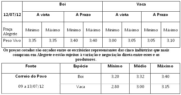 As médias dos remates de gado geral , realizados no Parque Dr. Lauro Dornelles, no período de 02 a 06 de julho, foram as seguintes: