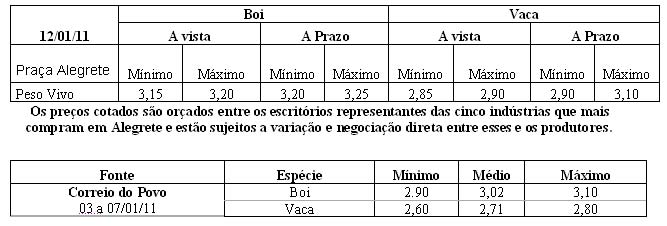 Os preços vigentes no mercado agropecuário desta semana atingiram as seguintes cotações médias: