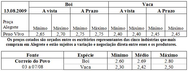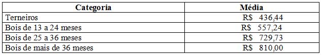 As médias dos remates de gado geral, realizados no Parque Dr. Lauro, no período de 03 a 07 de agosto foram as seguintes: