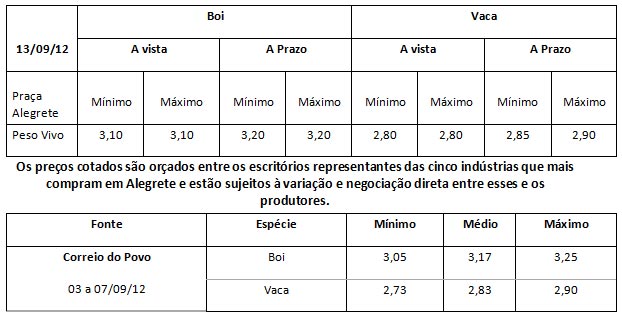 As médias dos remates de gado geral, realizados no Parque Dr. Lauro Dornelles, no período de 10 a 14 desetembro, foram as seguintes: