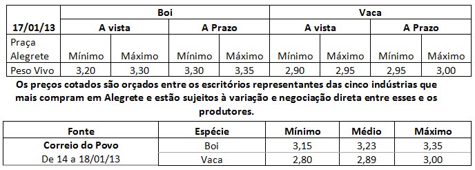 | No último dia 12 de janeiro,no Parque Dr. Lauro Dornelles, ocorreu a 34ª Feira de Ovinos de Verão e o Ovelhão. As médias estabelecidas foram as seguintes: |