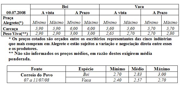 As médias dos remates de gado geral, realizados no Parque Dr. Lauro Dornelles, na semana de 07 a 11 de julho, foram as seguintes: