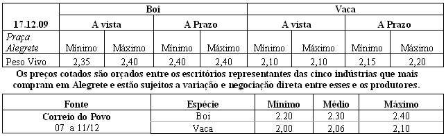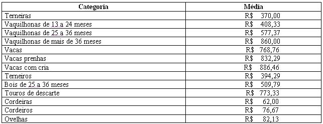 As médias dos remates de gado geral, realizados no Parque Dr. Lauro, no período de 07 a 11 de dezembro foram as seguintes: