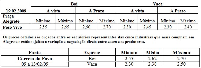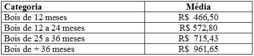 As médias dos remates de gado geral, realizados no Parque Dr. Lauro Dornelles, no período de 12 de fevereiro a 13 de fevereiro, foram as seguintes: