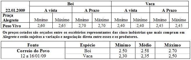 Os preços vigentes no mercado agropecuário desta semana atingiram as seguintes cotações médias: