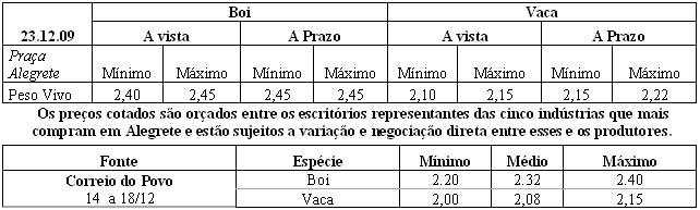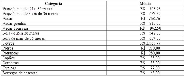 As médias dos remates de gado geral, realizados no Parque Dr. Lauro, no período de 14 a 18 de dezembro foram as seguintes: