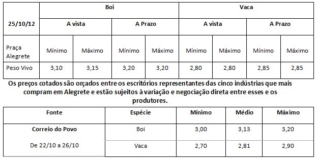 As médias dos remates de bovinos e ovinos ofertados durante a 70ª Expofeira de Alegrete, no Parque Dr. Lauro Dornelles, no período de 16 a 20 de outubro, foram as seguintes: