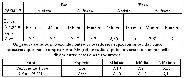 A 33ª Feira do Terneiro de Alegrete , promovida pelo Sindicato Rural de Alegrete e ocorrida no último dia 24 de abril, no Parque Dr. Lauro Dornelles obteve o faturamento de R$ 1.687,920,00 com a comercialização de 2.393 animais. As médias alcançadas por quilo vivo foram de R$ 3,70 para terneiros (peso médio 191 kg). O lote mais valorizado alcançou o valor do quilo vivo de R$ 4,36, propriedade de Ciro Manoel Andrade Freitas,sendo adquirido pelo senhor Orestes Calgaroto. O presidente Pedro Píffero analisa que o evento se consolida a cada ano, através de genética qualificada e remuneração diferenciada. "Entendemos que uma das funções da entidade é propiciar pontos negociais aos produtores alegretenses. A feira dos machos manteve a mesma média por quilo da edição de 2011 – R$ 3,70 em relação a 2.393 terneiros e acreditamos que no remate das fêmeas no próximo dia 28, sábado, as 3 mil terneiras e vaquilhonas que serão ofertadas receberão a remuneração justa à qualidade oferecida”, declarou. Destacou, também que 14% dos compradores do evento foram de fora do município, refletindo em 15% dos animais ofertados. Os lotes foram julgados pelos representantes do Senar, Hermenegildo Uberti, da SAA, Leonardo Nunes, e da Emater, Márcio Amaral, os quais elegeram como Lote Padrão Terneiro o de número 10, de propriedade do senhor Paulo Henrique Silveira, sendo o Lote Mais Pesado o lote 167, de Rogério Trindade.