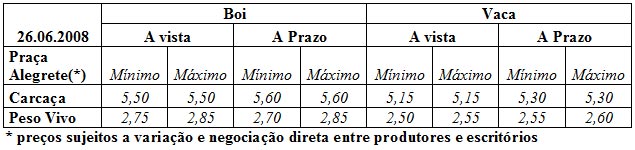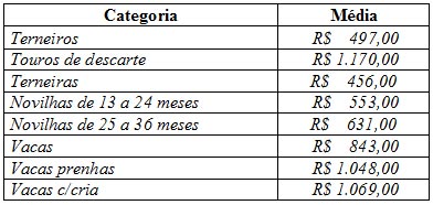 As médias dos remates de gado geral, realizados no Parque Dr. Lauro Dornelles, na semana de 16 a 20 de junho, foram as seguintes: