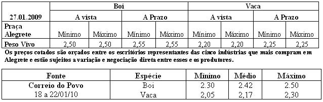 As médias dos remates de gado geral, realizados no Parque Dr. Lauro, no período de 18 a 22 de janeiro foram as seguintes: