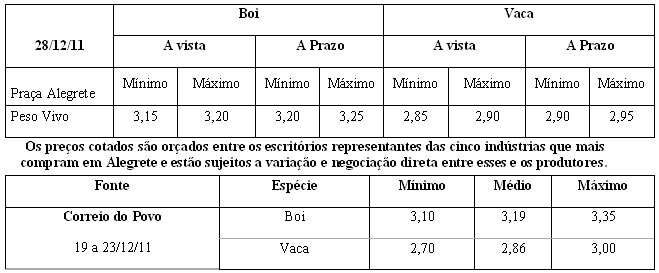 As médias dos remates de gado geral, realizados no Parque Dr. Lauro, no período de 19 a 23 de dezembro foram as seguintes: