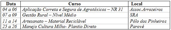 Cursos Senar e Sindicato Rural Julho e Agosto
